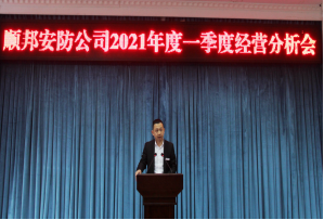 ? ? ? ? 4月6日,順邦安防公司召開2021年第一季度經(jīng)營分析會(huì)。會(huì)議主要總結(jié)了公司一季度經(jīng)營運(yùn)行情況,研究分析當(dāng)前形勢,簽訂《2021年度經(jīng)營目標(biāo)責(zé)任書》,安排部署下一步工作。公司黨委書記、執(zhí)行董事、總經(jīng)理唐清華主持會(huì)議。